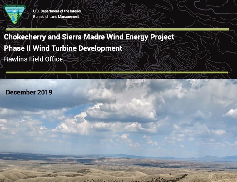 In 2016, the American Bird Conservancy — one of the few (only?) NGOs in America that’s genuinely interested in protecting wildlife — identified “10 of the worst sited wind energy projects for birds in the US.” It included Anschutz’s Chokecherry project “because of its potential impacts on Greater Sage-Grouse and Golden Eagles.” It continued, saying that the Wyoming location is “not a good place to put large-scale commercial wind energy and associated infrastructure from the perspective of wildlife conservation.” A year earlier, ABC noted that the FWS itself had determined that “Golden Eagle populations in the United States may not be able to sustain any additional, unmitigated mortality and the threshold for this species is zero.”